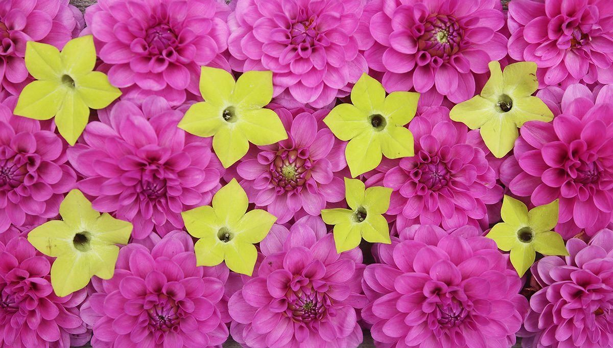 And this next bit is just for fun. I needed a backdrop for a photo for a giveaway on Instagram (stay tuned to my Instagram for that) and I raided the ‘Serkan’ dahlias. The next thing I knew I had cut a bunch of flowers, picked a few Nicotiana flowers and I was making a flower “quilt” out of them. It was so pretty I left it on the outdoor side table for a few days.