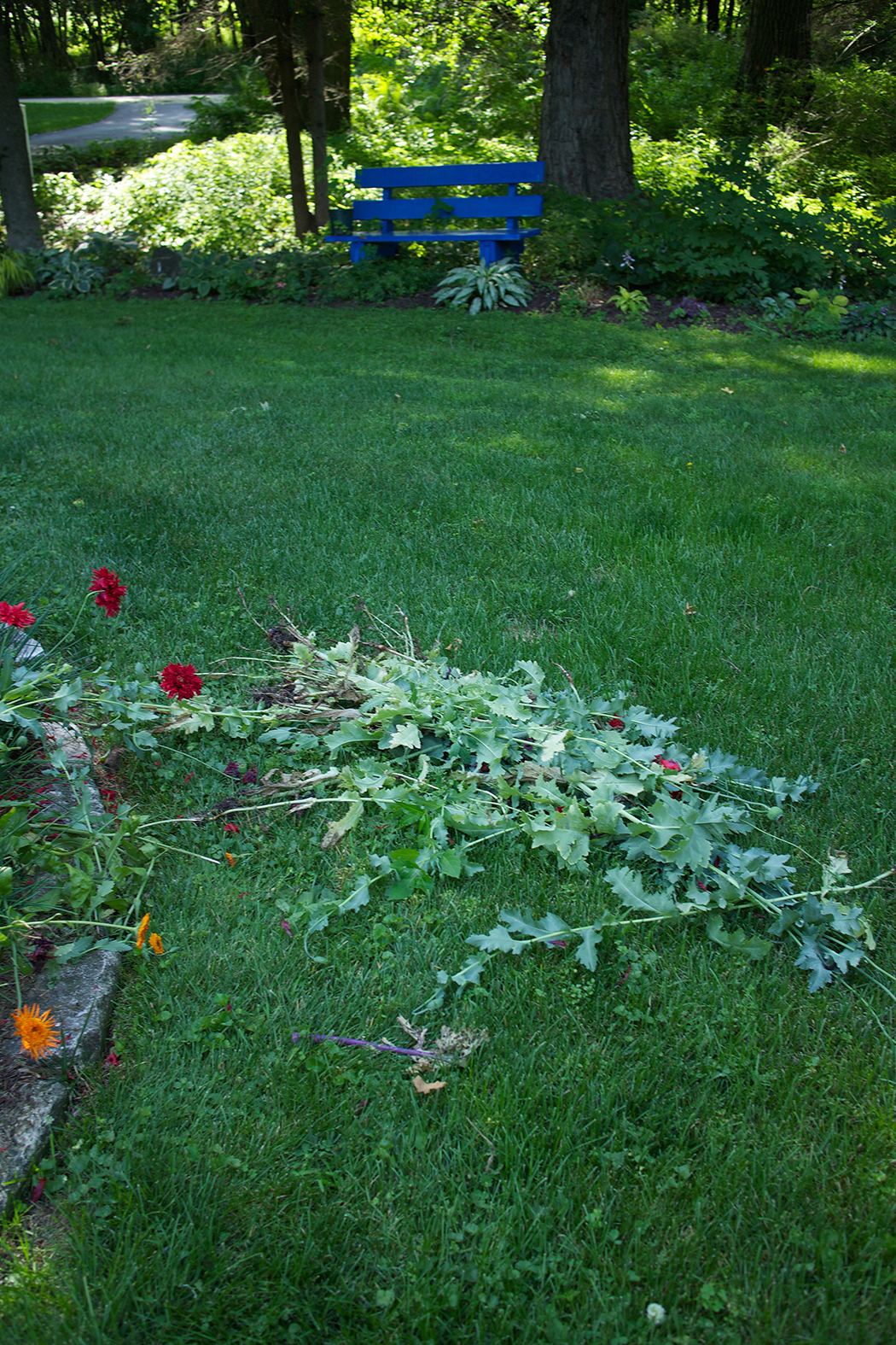 There’s nothing neat about this kind of gardening. There’s no time to grab the wheelbarrow to collect prunings and pullings. I just made piles around the garden and I’ll go back later to clean up.