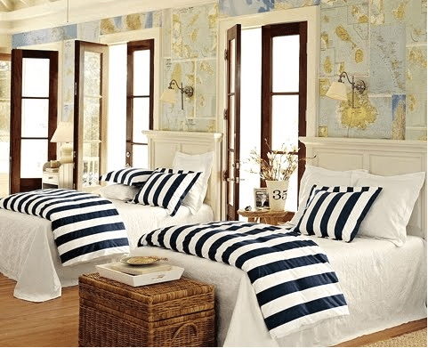 The one with no source seems like it might have come from Pottery Barn? Not sure but the lighting, furniture and bedding led me there. Although it doesn't exactly scream catalog so it's hard to say. Great post! We love anything maritime. We're landlocked in Nebeaska so that's probably why!!
