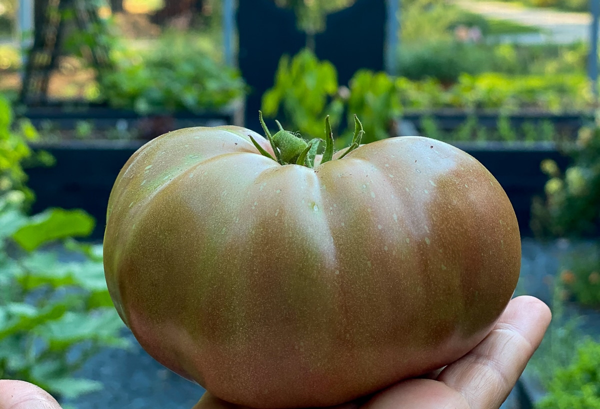 Whether this year’s vegetable garden is declared a success or a failure depends entirely on this lone tomato. It’s the first big slicer that I’ve picked this year, brought in to finish ripening on the windowsill, safe from critters and cracking.
